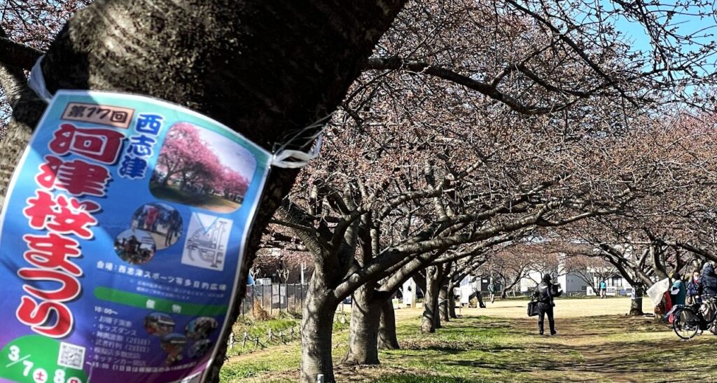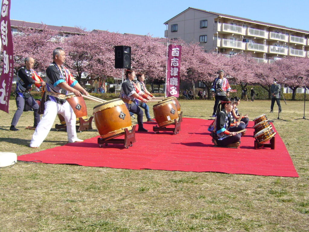 西志津河津桜まつりは、西志津スポーツ等多目的広場の周囲にに植えられ河津桜の開花時期に合わせて執り行っている春一番のお祭りです。