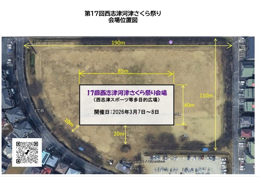 西志津河津桜まつり会場は西志津スポーツ等多目的広場内にて行います。