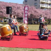 西志津河津桜まつりは、西志津スポーツ等多目的広場の周囲にに植えられ河津桜の開花時期に合わせて執り行っている春一番のお祭りです。